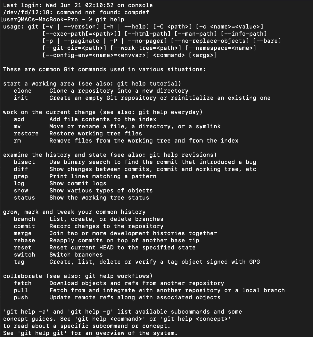 The git help command in Git is used to access the built-in documentation and get help on various Git commands and topics. It provides information about Git commands, concepts, configuration options, and more. Let’s check out several ways in which we can use the git help command.