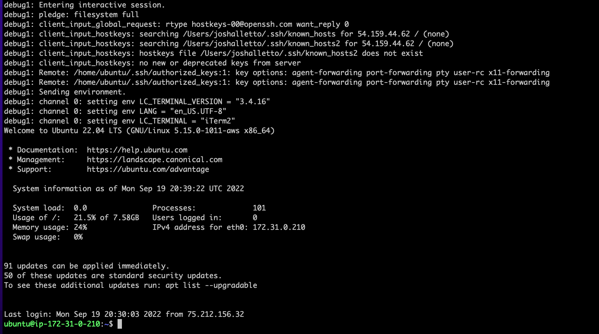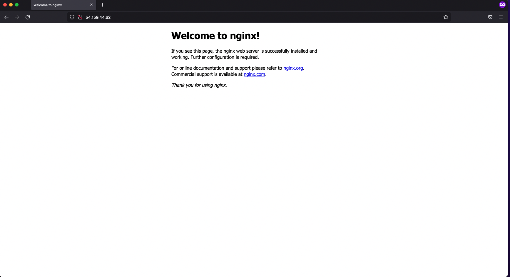 Connecting via SSH proves our instance is reachable from the internet. Hurray! Just to take it one step further, let’s confirm that HTTP is working by installing nginx and connecting via a web browser.