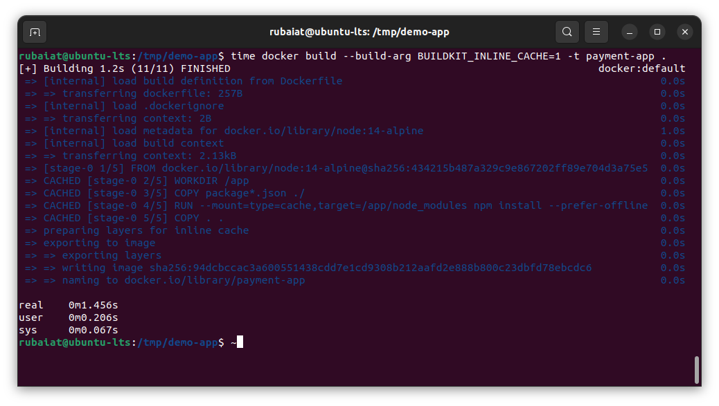 docker build -t payment-app .Subsequent builds will use this cache to reduce build time.