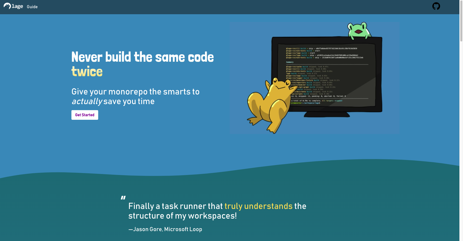 - It supports both remote and local build caching. Therefore Lage doesn’t run a task twice, which makes it fast.