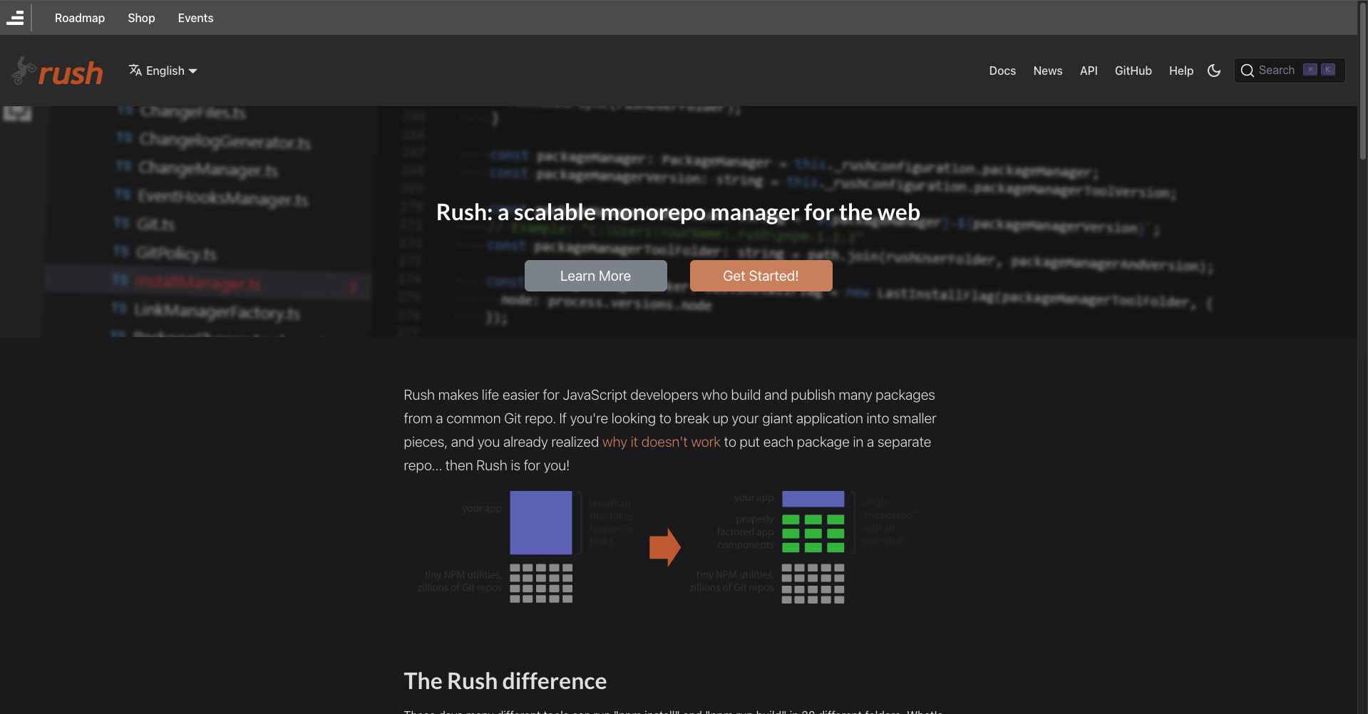 Rush is another build tool made by Microsoft. It’s a scalable monorepo manager designed for large teams to handle large repositories. Rush is used by organizations like OneDrive, Windows Store, and Wix.