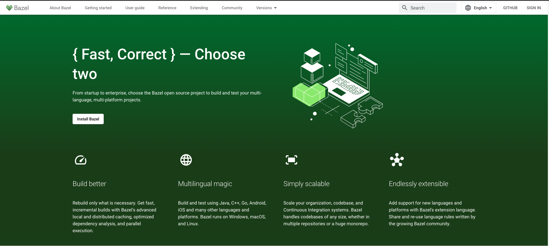 - It’s fast. It’s able to rebuild only necessary file changes by comparing them to previously cached build results. Bazel runs build operations locally by default but you can connect it to a cluster, which makes it even faster.