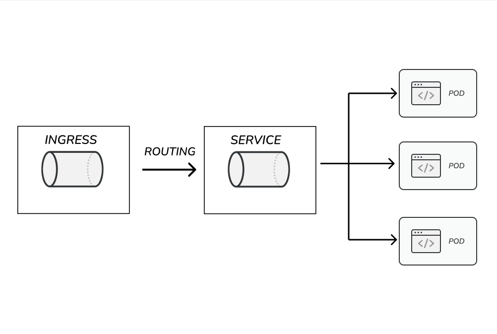 In this flow, you create a service to allow access to all created pods or replicas through a single IP or name, as it abstracts away the individual pod addresses to a specific service name and allows requests within the cluster to reach multiple pods. Then your ingress configuration sets a collection of rules allowing inbound connection to communicate with your cluster services.