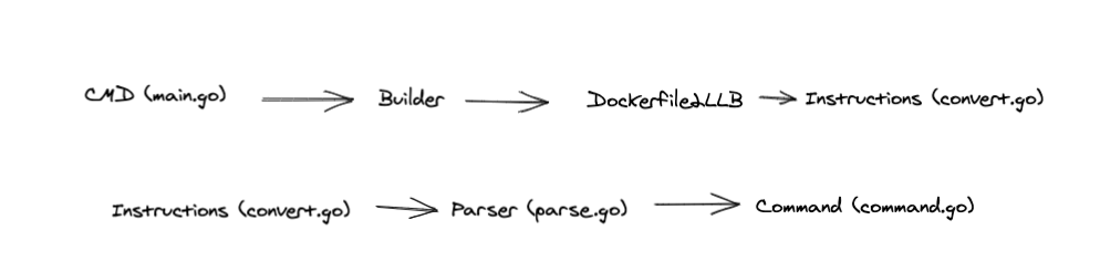 The modules in the dockerfile frontend split the parsing of the input file into several discreet steps, with execution flowing this way: