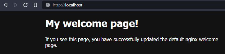 docker run -p 80:80 mynginx:latestYou should see a custom welcome page when you check.
