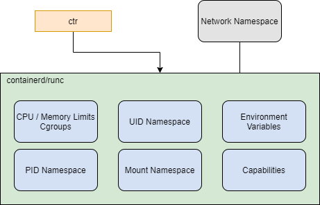 containerdcan also attach some parts of the host file system into the container when required. - Create a UID namespace where the UID 0 (root) within the container (root) maps to a different UID on the host system. This feature ensures that, should the container root process be able to access the host system, it’s blocked from running as root on the host.
