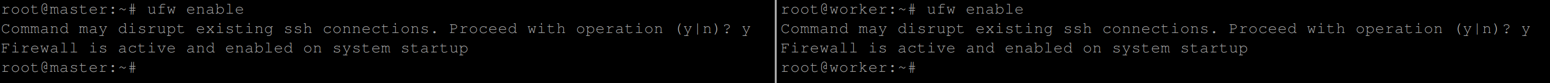 Firstly, execute the following command on both servers to enable the Uncomplicated Firewall (UFW) on the system. Once enabled, UFW will start automatically at boot and enforce the firewall rules you configure: