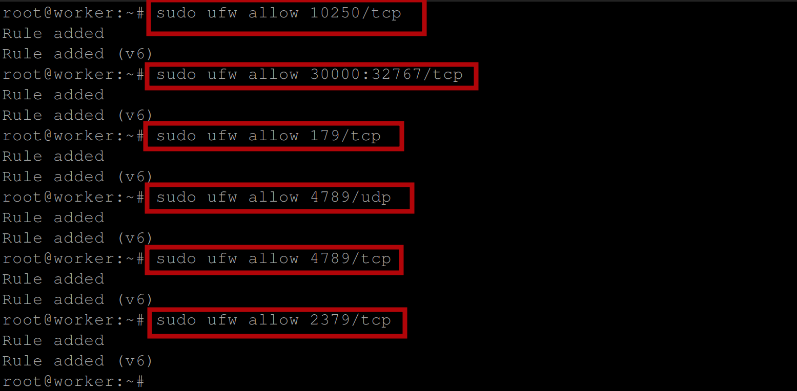 Next, run the following commands on the server that will be used as a worker node. If you have multiple worker nodes, execute these commands on all of them: