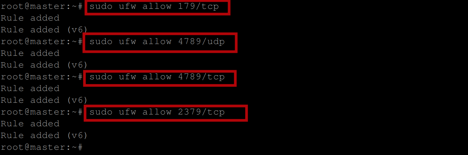 Then execute the following commands on the same server to open ports for the Calico CNI as this is the Kubernetes network plugin we will be using: