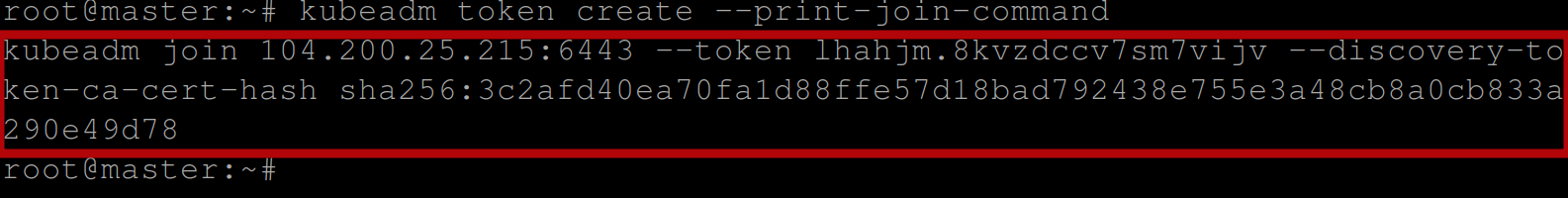 kubeadm token create --print-join-commandThis command generates a token and prints a command that can be used by worker nodes to join the cluster. The command also includes a token and the IP address of the control plane node: