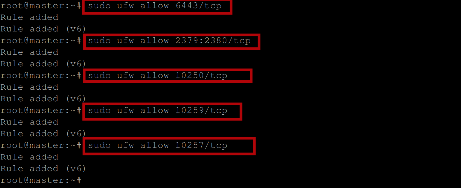 sudo ufw allow 2379/tcp #allows incoming TCP traffic on port 2379,
