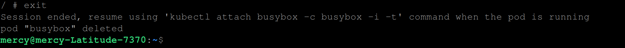 Firstly, delete the busybox container by simply typing the command exit and you should have the below output: