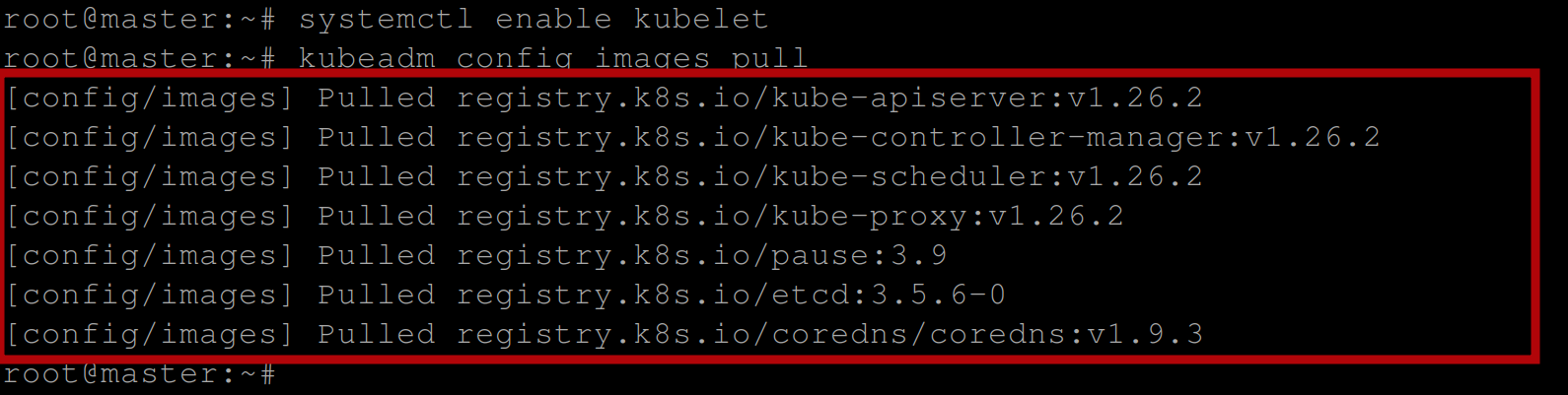 First, run the following commands to enable the kubelet service and initialize the master node as the machine to run the control plane components (the API server, etcd, controller manager, and scheduler) :