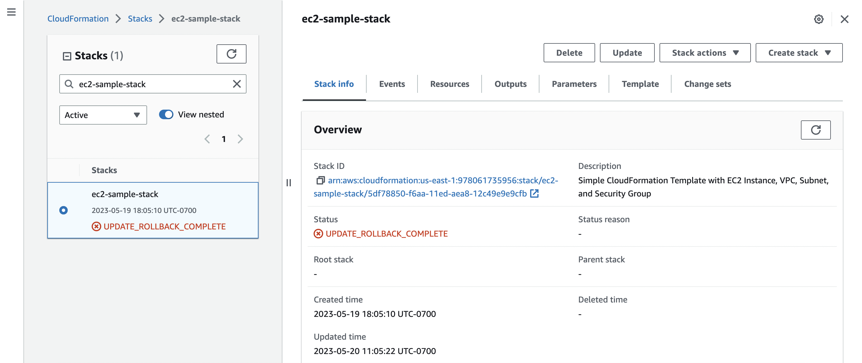 This results in an overall stack status of UPDATE_ROLLBACK_COMPLETE:
