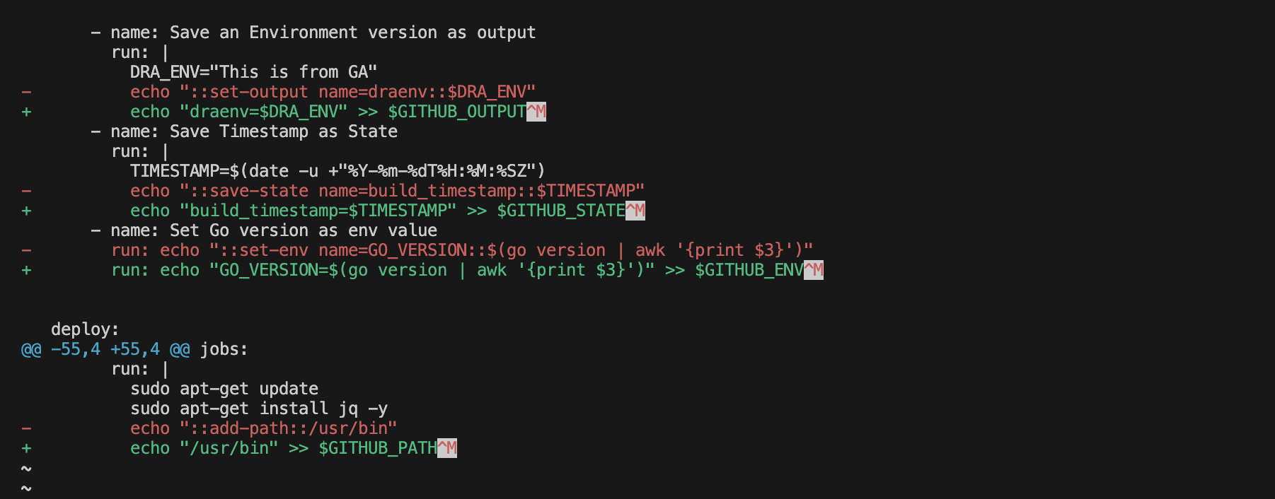 Resolving Deprecation Errors in GitHub Actions Due to the `set-output`, `save-state`, `add-path` and the `set-env` Workflow Commands
