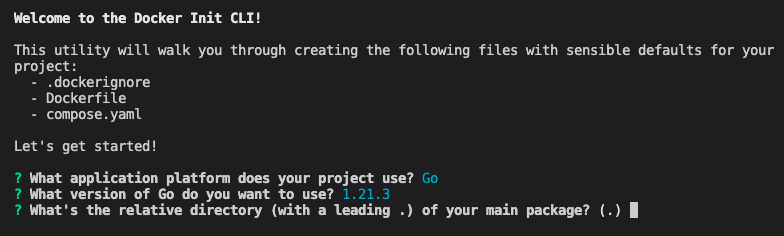 Then, Docker Init will ask you which Go version to use: