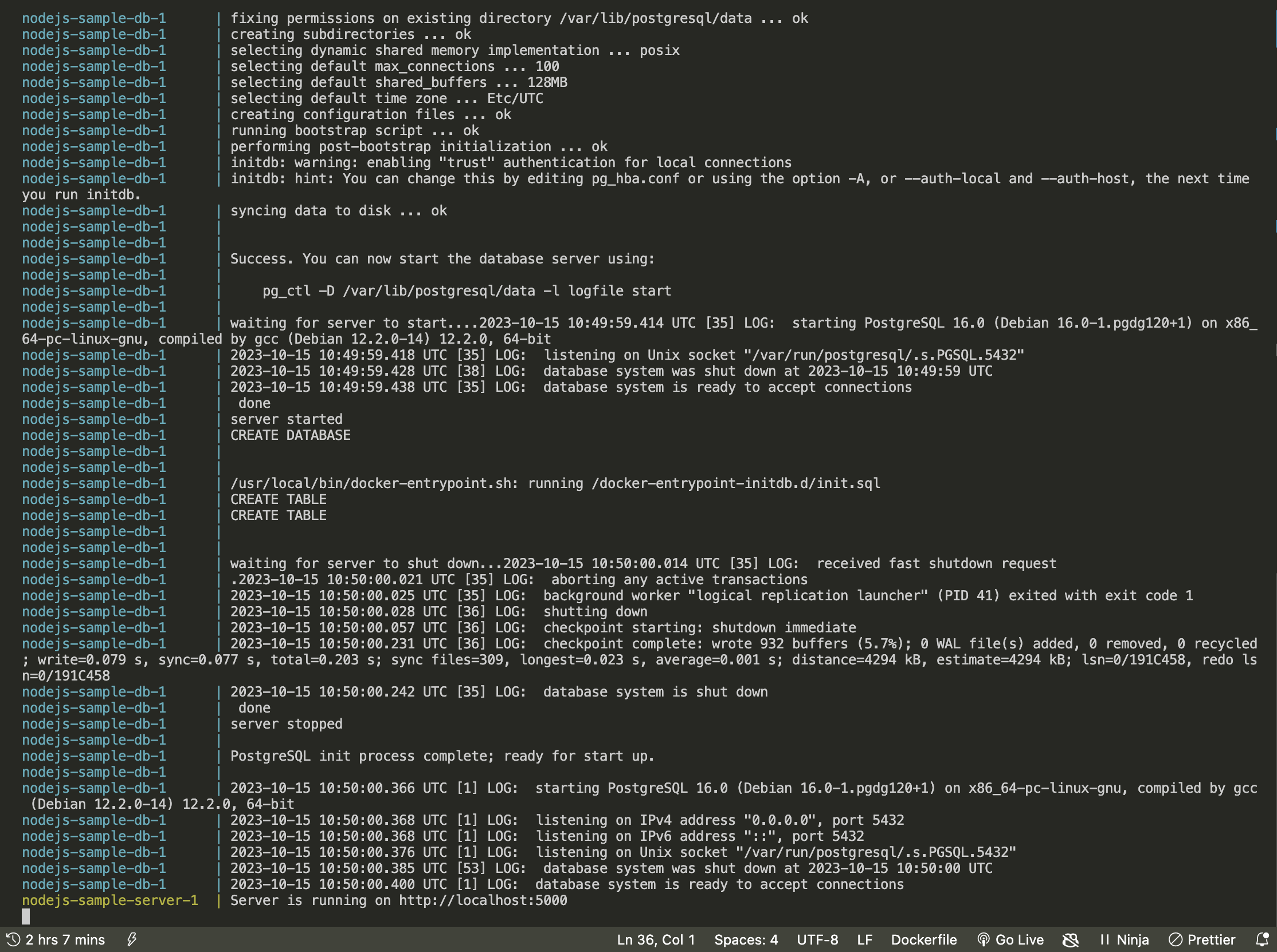 One of the key benefits of using docker init is that it generates a Dockerfile and a Docker Compose file that are stable and optimized for your specific Node.js project. This is particularly useful for complex projects that require databases like Postgres because you don’t have to configure these services manually.