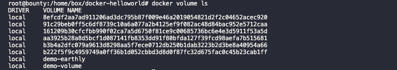 docker run -it --rm -v demo-earthly:/opt/demo-earthly ubuntu ls /opt/demo-earthlyCreate a Docker Volume Explicitly