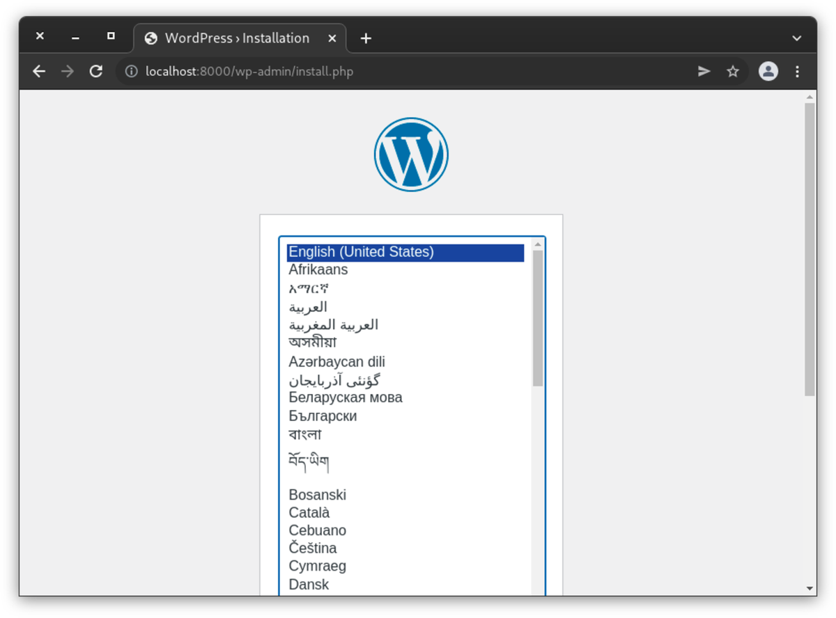 $ docker-compose upYou can verify that it’s running by visiting localhost:8000: