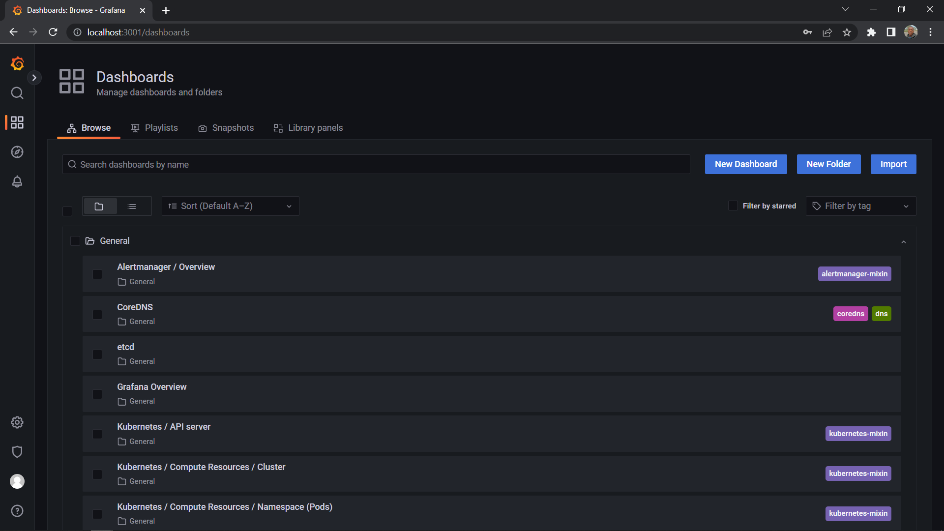 kubectl port-forward svc/monitoring-grafana -n kubernetes-monitoring 3001:80In your browser, go to http://localhost:3001/ or http://YOUR_SERVER_IP:3001/ if you’re running on a cloud machine.