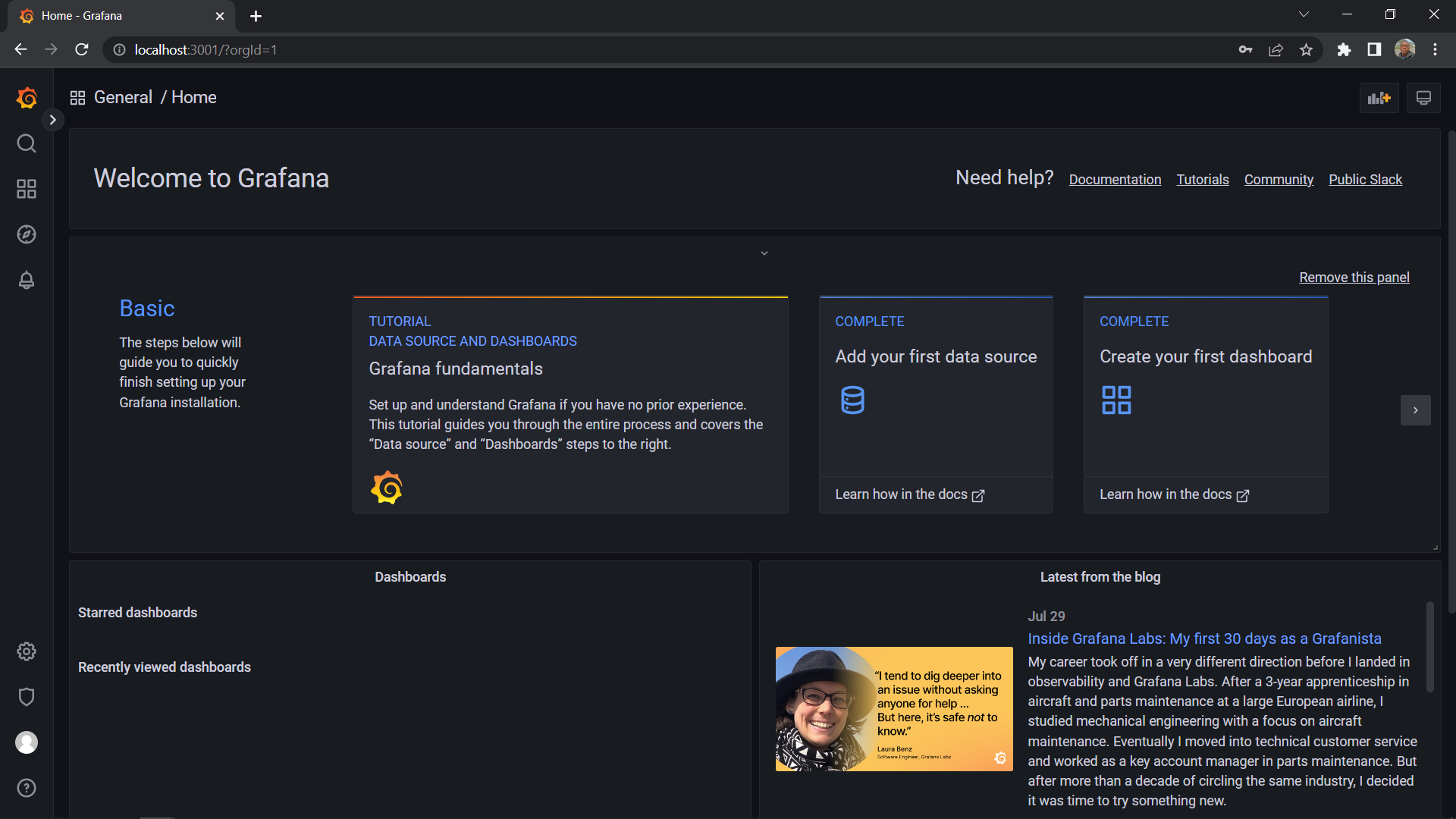 Now to start monitoring, type this URL in your browser type http://localhost:3001/dashboards or http://YOUR_SERVER_IP:3001/dashboards>if you’re using a cloud server.