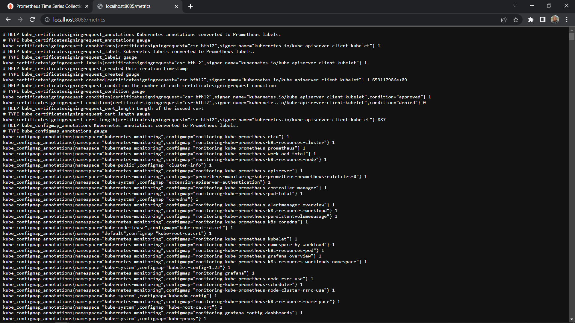 kubectl port-forward svc/monitoring-kube-state-metrics -n monitoring 8080 Open your browser and type http://localhost:8080 or if you’re using a cloud machine http://YOUR_SERVER_IP:8080). Please keep in mind that if you get a permissions access issue when forwarding traffic to port 8080, you can use this option.