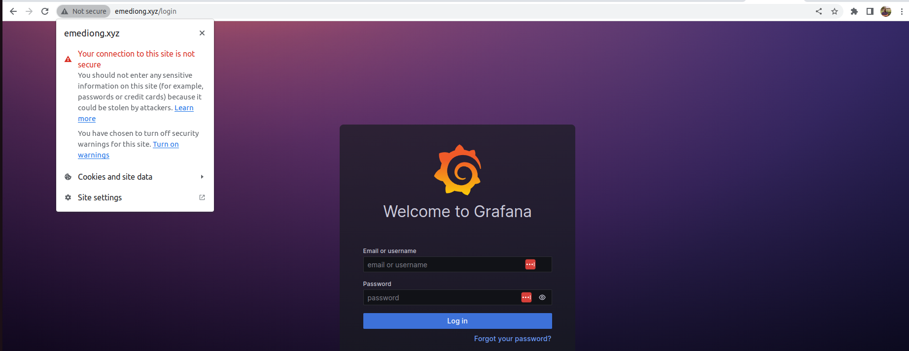 When successfully access Grafana, you will notice a black padlock icon in the top left corner of your browser’s address bar. This icon signifies that your site is now HTTPS-secured.
