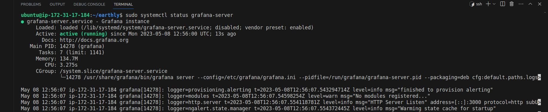 sudo systemctl start grafana-serverNext, check the service status to ensure that your Grafana is active:
