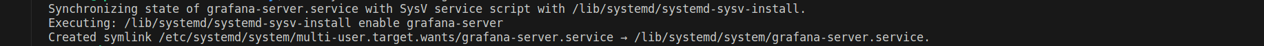 sudo systemctl enable grafana-serverThe above command will generate an output showing that Grafana is now set to autostart upon boot using the symbolic link created by systemd.