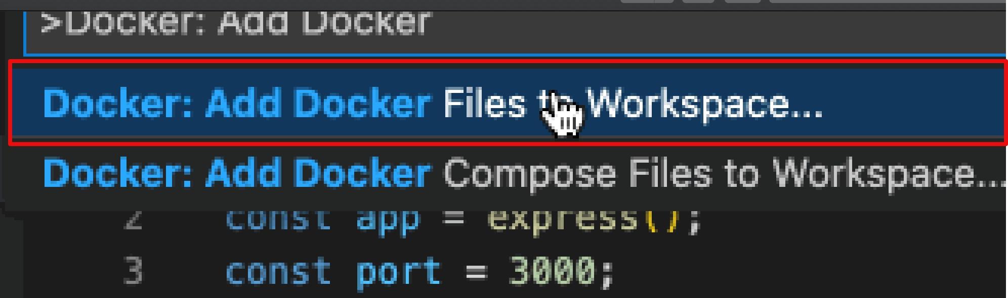 Docker: Add Docker files to Workspace command`: