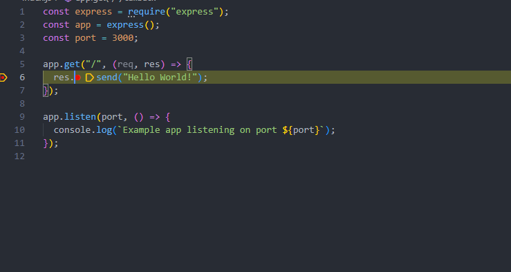 The docker extension includes a VS Code debugger configuration inside .vscode/launch.json for debugging when running inside a container. To do this, set a breakpoint in the get() handler for the ‘/’ in index.js by pressing the f9 key. Then go to the run and debug section in VS Code and select Docker Node.js launch debugger and start debugging by pressing f5 :