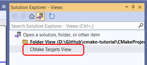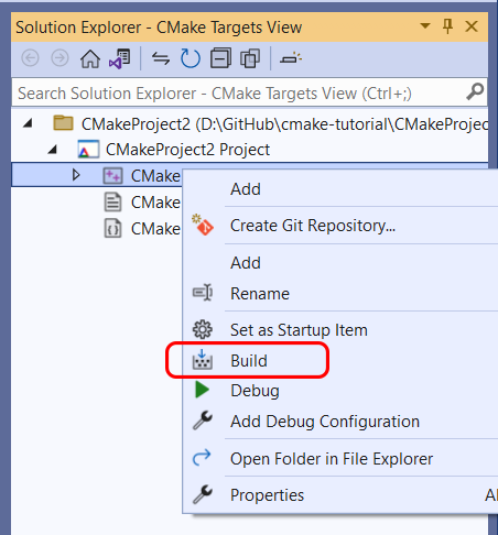When you’re ready, Visual Studio gives you several options to build your CMake projects, including the toolbar or the Solution Explorer.
