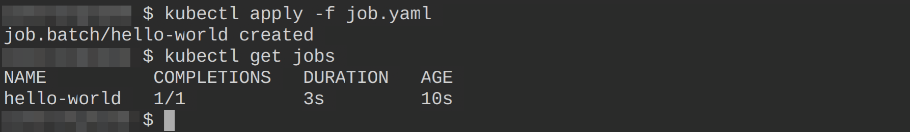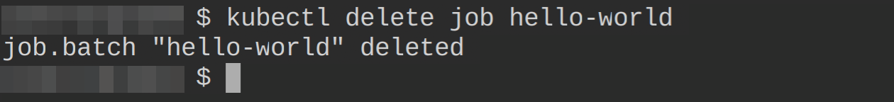 Since the job has run to its completion, you’ll need to delete the job manually with the following command kubectl delete job hello-world as it will not delete itself automatically when it runs to completion: