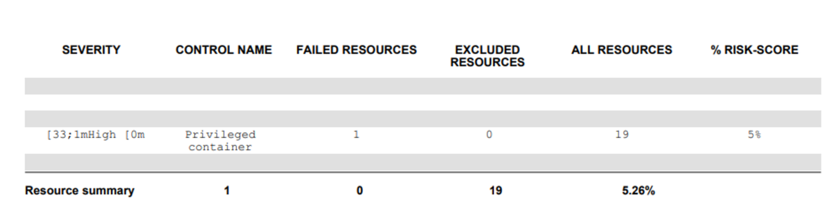 $ kubescape scan --submit --enable-host-scan --format-version v2 --verbose This scanning command will output all the security analyses of every object in your cluster. From the scan results, I have picked the deployment object’s results which I will use to teach how to analyze the scan results in the next subsection.