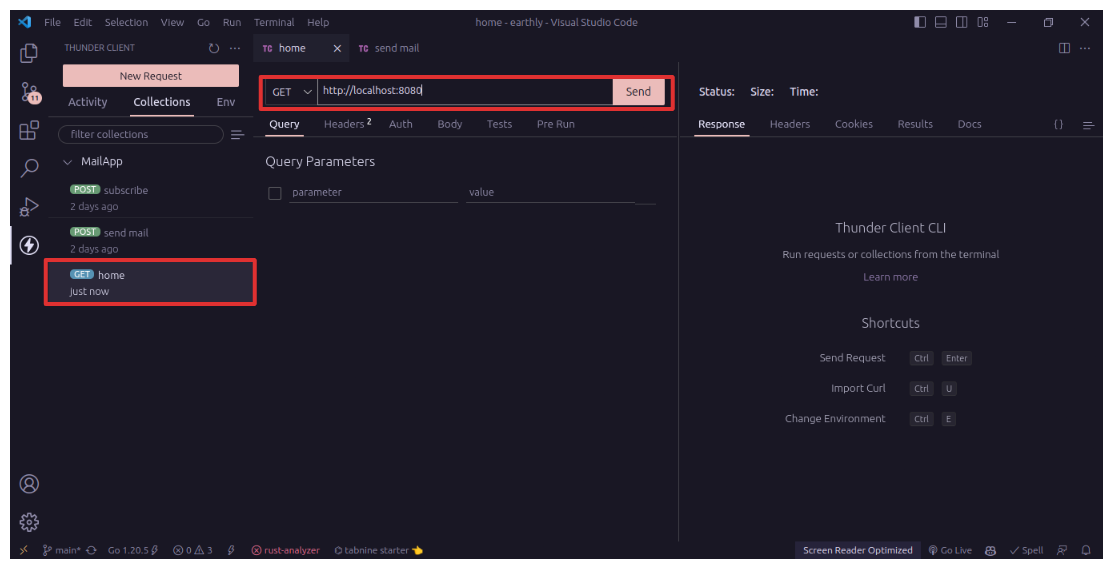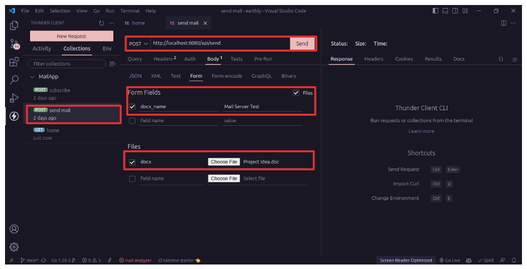 As you have finished building the mail server API, it is time to test the application. In order to do that, you will need a REST Client API tool such as Postman, Insomnia, or Thunder Client Extension in Vscode. I will be using the ThunderClient extension.