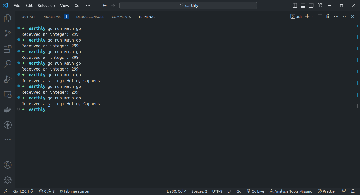 fmt.Println("Received a string:", s)