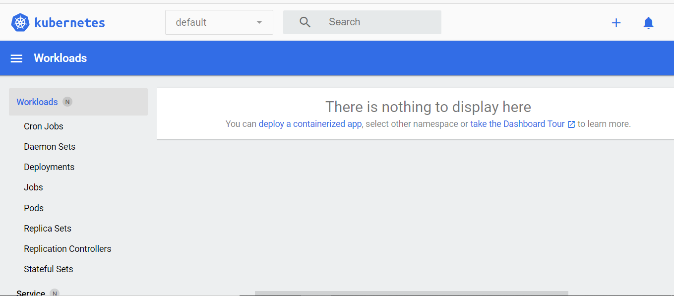 * Opening http://127.0.0.1:3251/api/v1/namespaces/kubernetes-dashboard/services/http:kubernetes-dashboard:/proxy/ in your default browser...Since you have not created any object there will be no details displayed until you created an object: