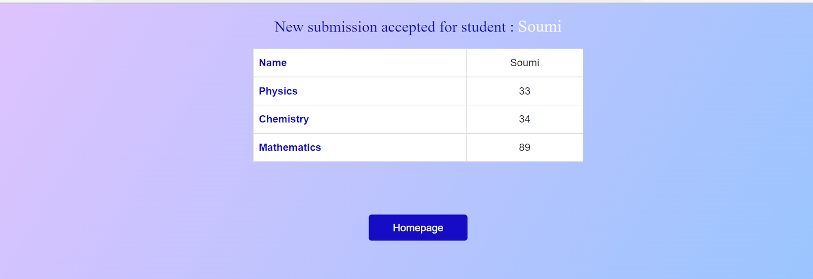 Add a few more entries and ensure that the app is working as expected. You can also edit submissions for a certain student. After adding a few more records, your database might look like this: