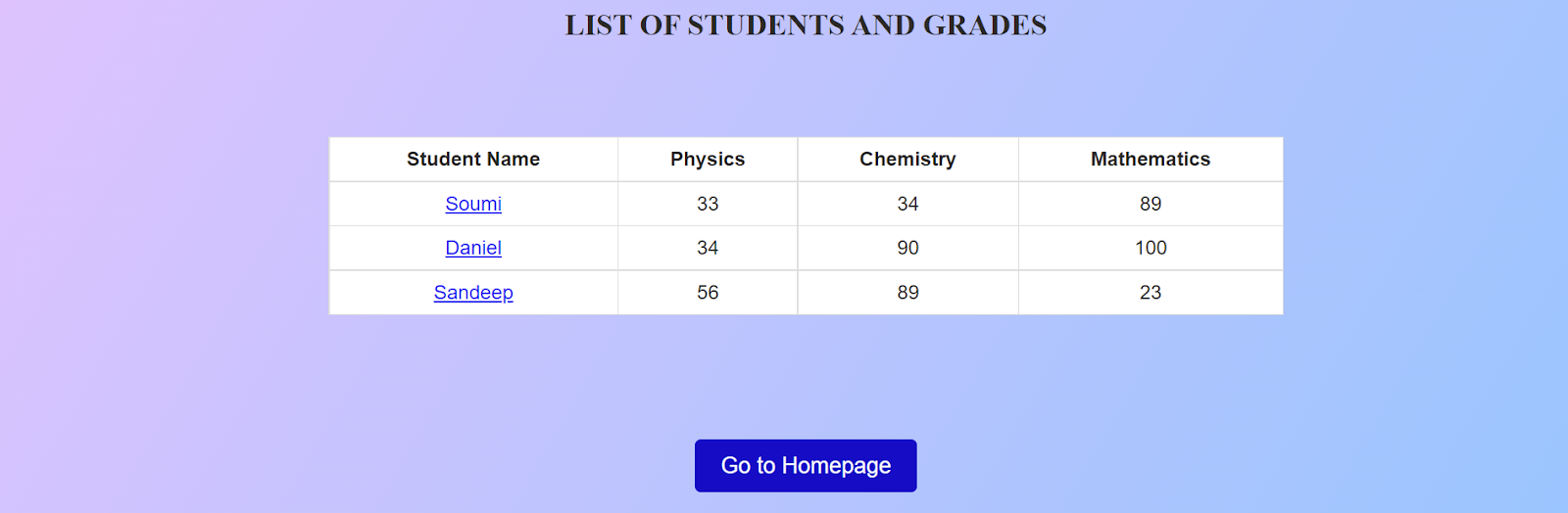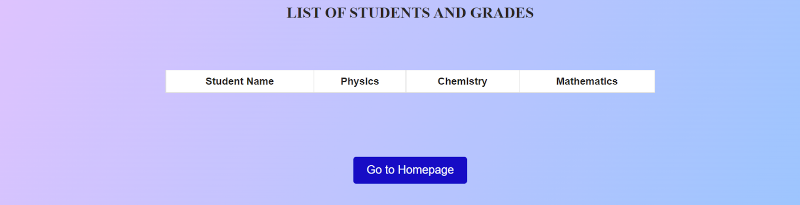 Next, go back to the homepage and click on Get Grades of all Students. This page will show all your student records: