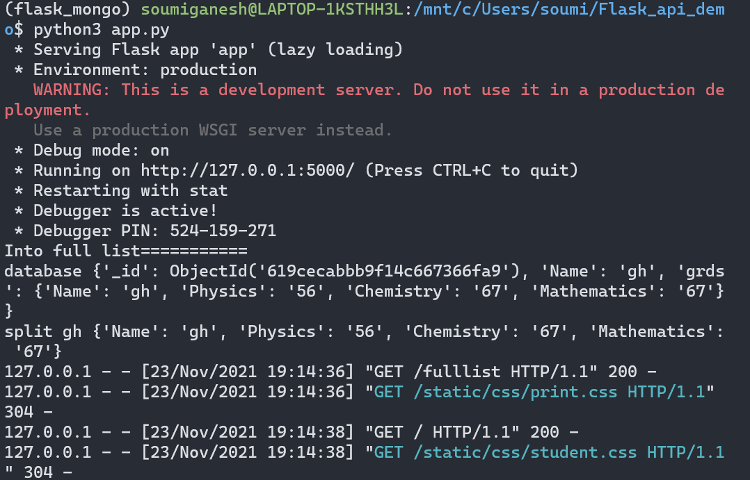 docker run -d -p 27017:27017 --name test-mongo2 mongo:latestNow go to localhost:5000 and click on Get Grades of all Students: