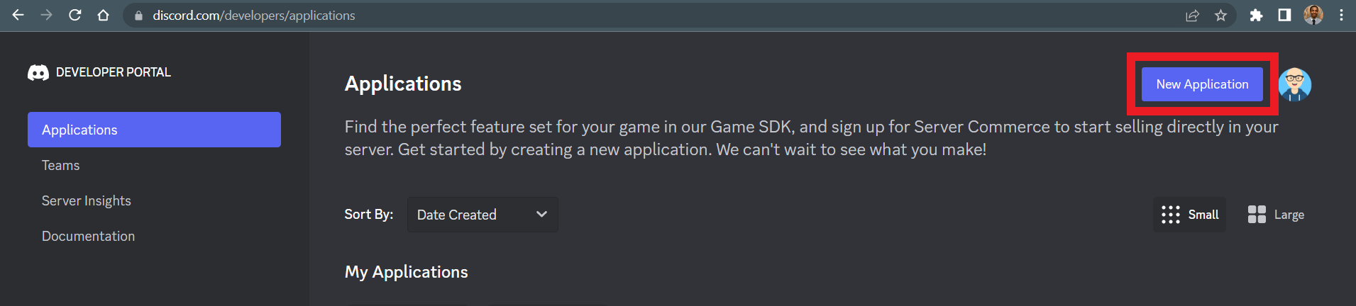Click on the New Application button.