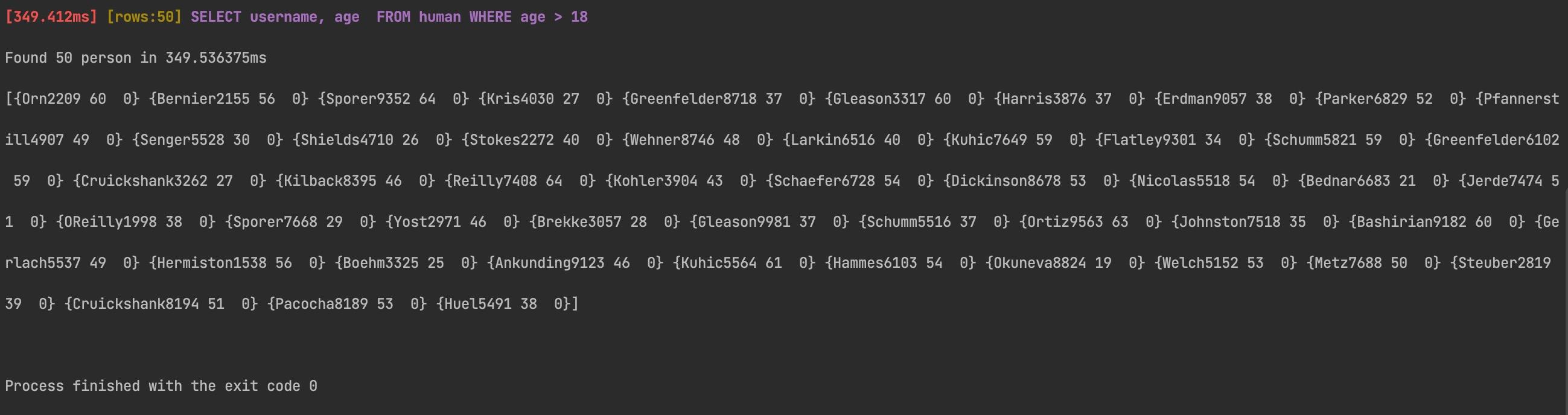 }The FindHumanByAge function runs a SQL statement that retrieves the username and age fields with their age field greater than the specified integer from the database.