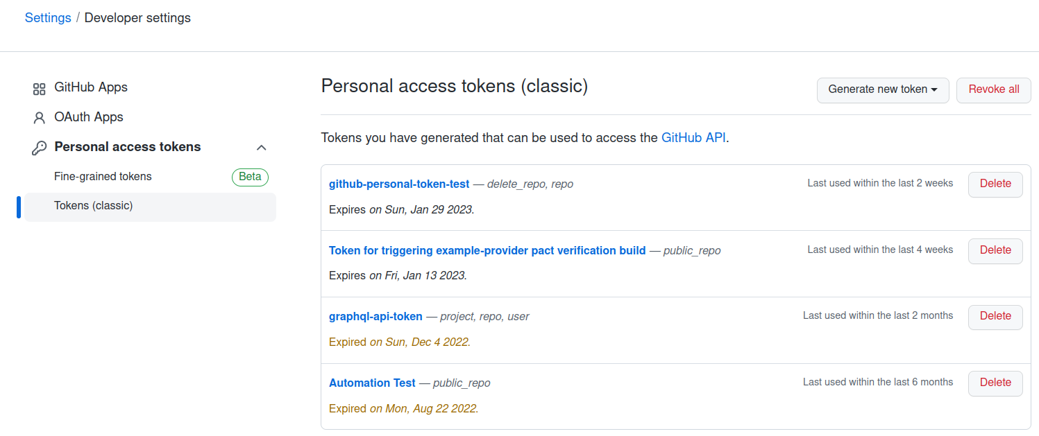 From this page, click on Personal access tokens, and choose Tokens (classic).