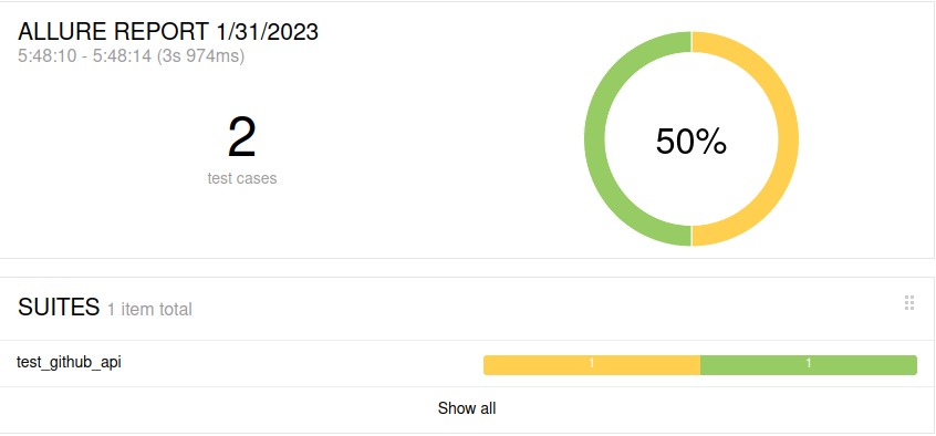 pytest --alluredir=allure_result_folder test_github_api.pyThen open the allure report.