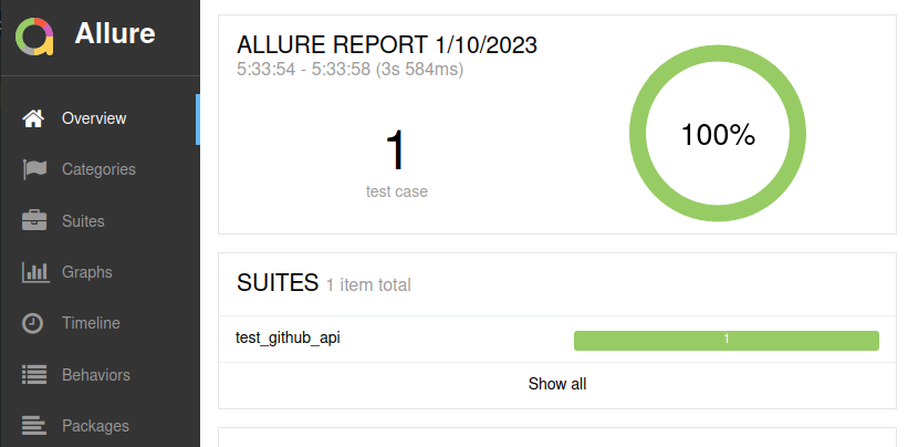 pytest --alluredir=allure_result_folder test_github_api.pyStep 8: View The Allure Test Report