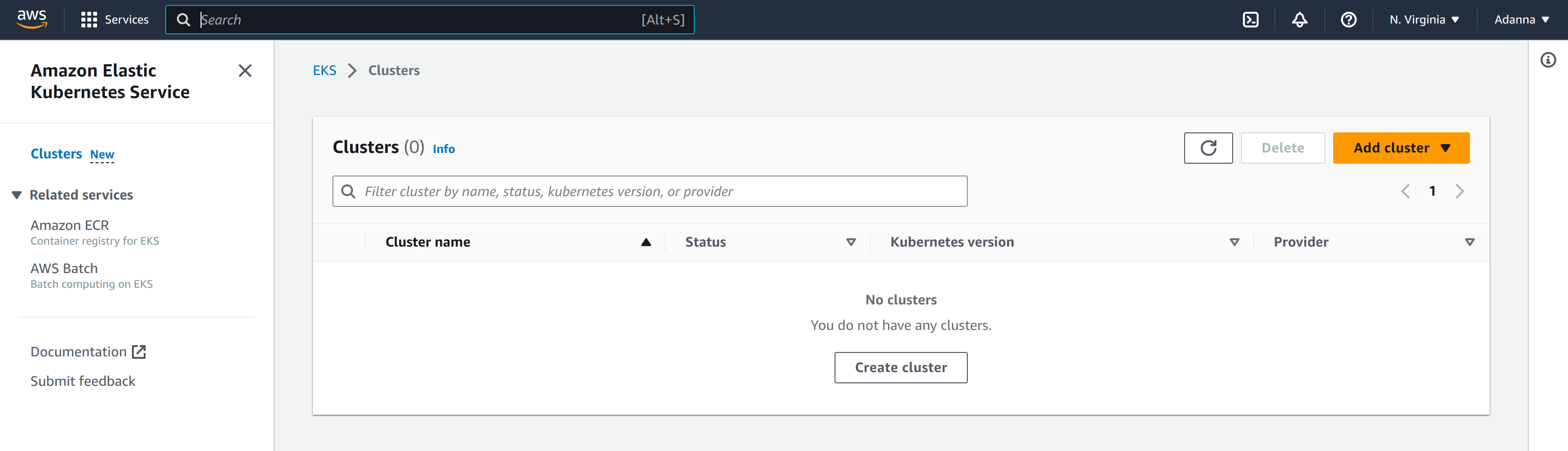 Now, if you head over to the EKS page on the AWS management console, you should see that the cluster was deleted: