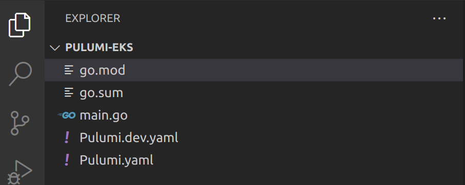 Now, open up the current directory with your default code editor and you should see that Pulumi initialized a Go project containing the following files: