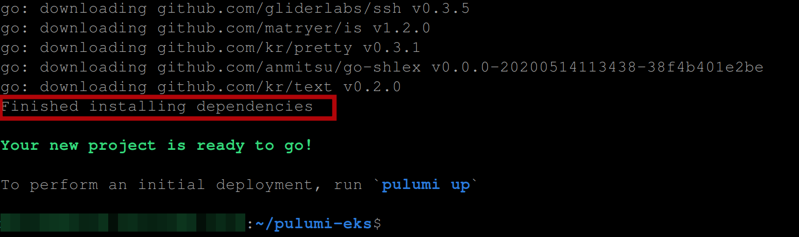 Once Pulumi has installed the dependencies, you should have the following output:
