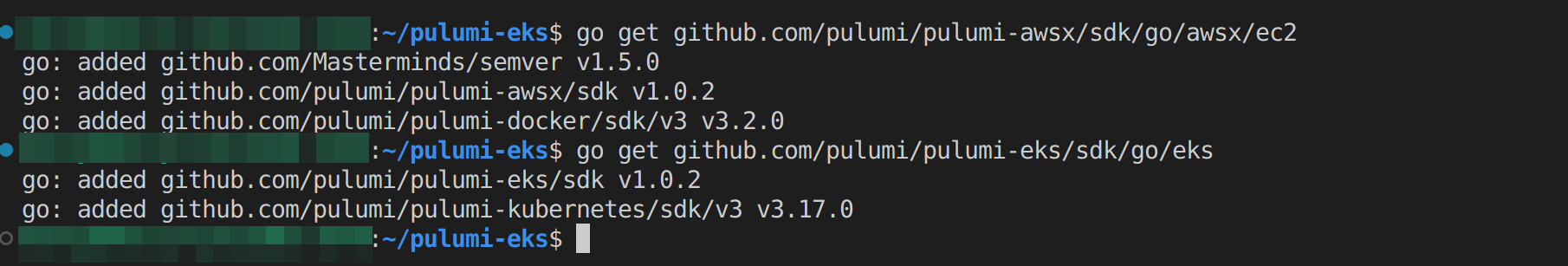 go get github.com/pulumi/pulumi-eks/sdk/go/eks