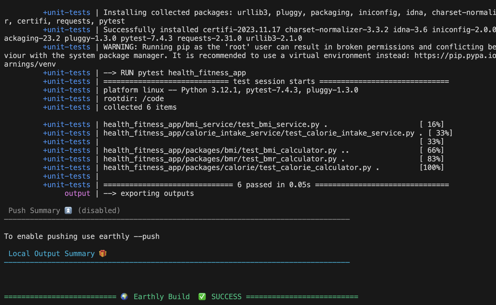 pants run health_fitness_app/main.pyYour output should look like this: